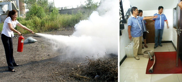 俗話說“行軍打仗,軍馬未動,糧草先行”,說的就是做好事先準(zhǔn)備工作的重要性。對于化工公司這樣可燃、易燃物多的場所而言,如何做好消防安全工作,提升火災(zāi)防范能力,及時發(fā)現(xiàn)、排除火災(zāi)隱患就顯得格外重要。2011年8月26日下午15時,奧吉娜公司對全體員工進行了一次消防安全技能專題演練。