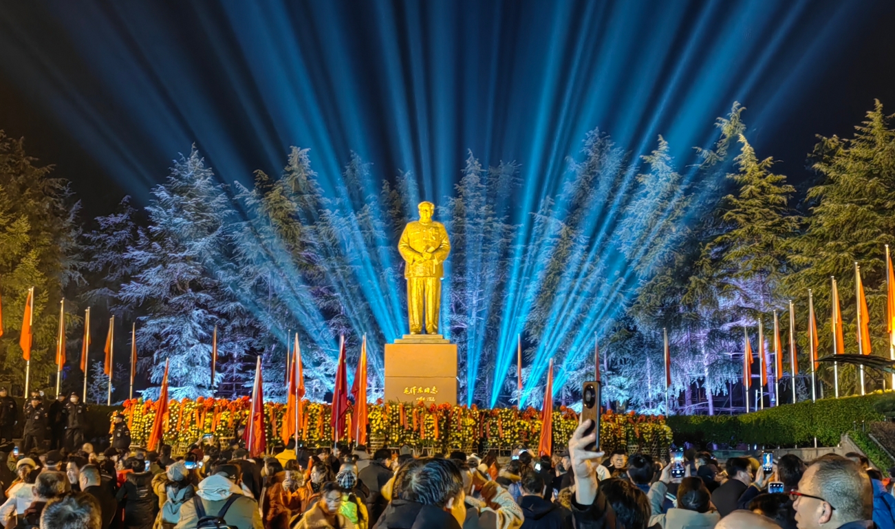 今天,韶山毛澤東廣場人山人海,人們高唱紅歌,紀念毛主席誕辰131周年,懷念親人毛主席。