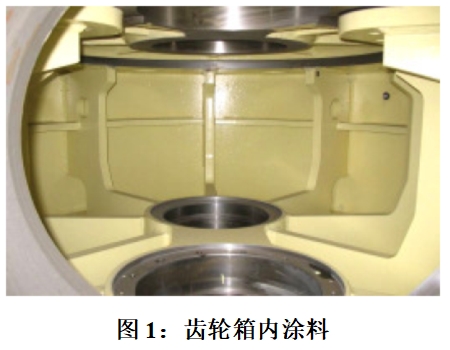 涂料主要用于齒輪箱外部和內部的保護。齒輪箱外部涂料的作用是抵御惡劣環境對齒輪箱造成的腐蝕、鹽蝕等危害,內涂料用于齒輪箱儲存和運輸過程中防腐蝕,并且內涂料能夠束縛加工過程中留在齒輪箱中的鐵屑和沙粒。而內涂料的選擇和使用還應該注意什么呢?內涂料作為齒輪箱的內涂層保護(見圖1),不可避免的與齒輪油接觸,所以內涂料和齒輪油的兼容性就顯得非常重要。