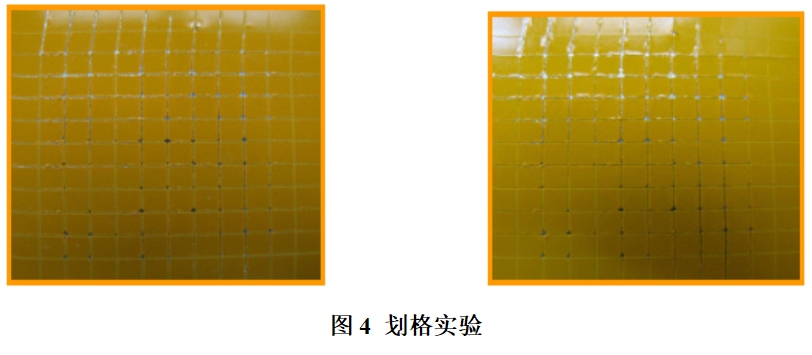 圖4為劃格實驗的圖片。在膠帶粘貼前后,如果測試板無變化,說明潤滑油沒有對涂料產生不良影響。
